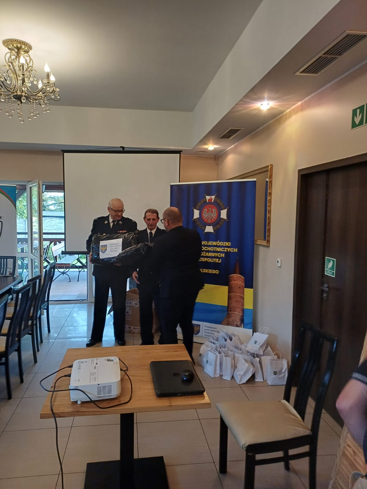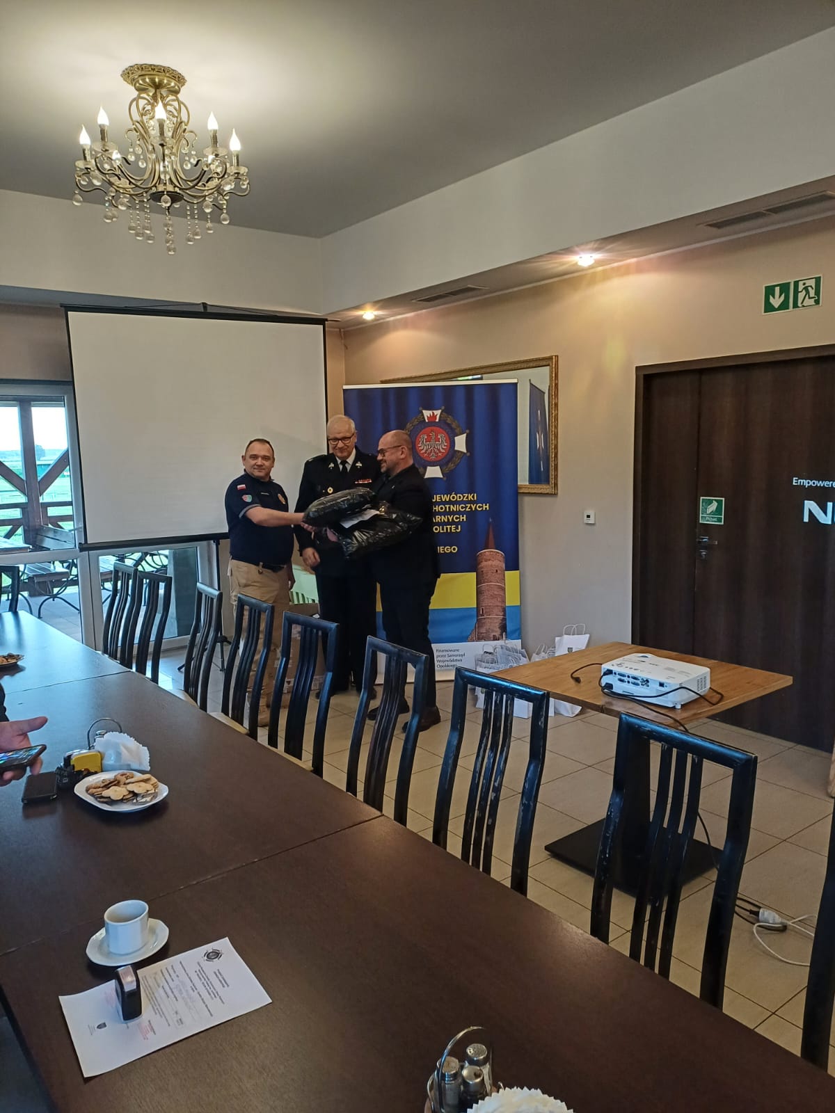 W trakcie szkolenia zostały przekazane ubrania bojowe czterem jednostkom, które mają zwiększyć bezpieczeństwo strażaków w trakcie działań ratowniczo gaśniczych.
